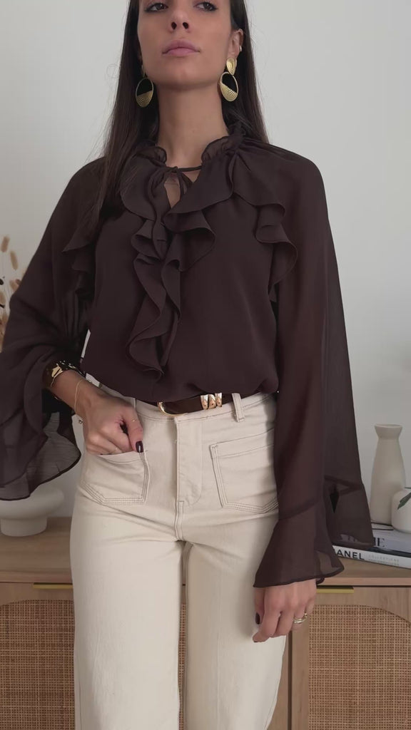 Blusa in Chiffon Marrone