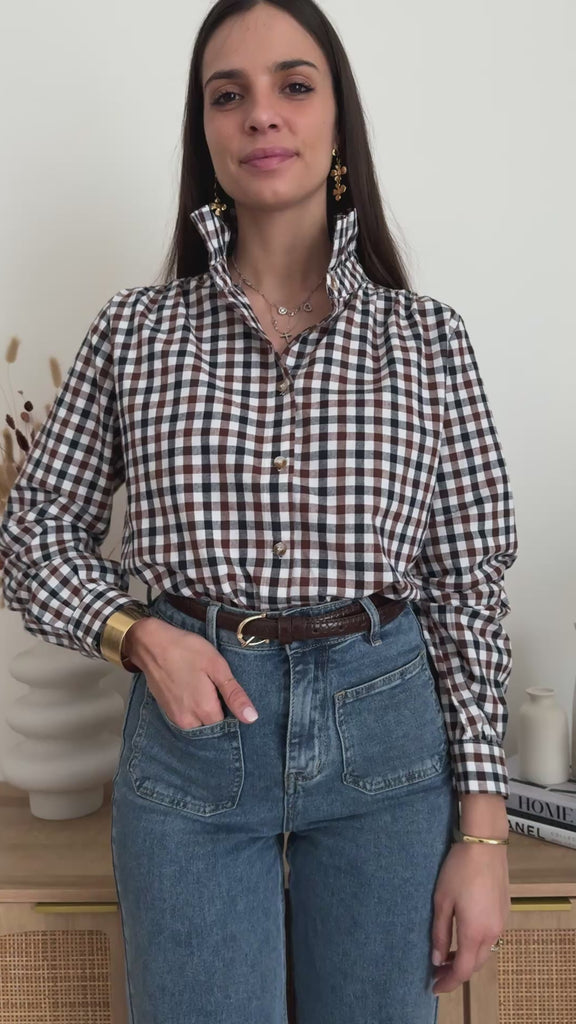 Colore: Base Ecrù a quadri marroni e blu navy